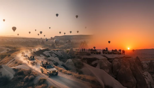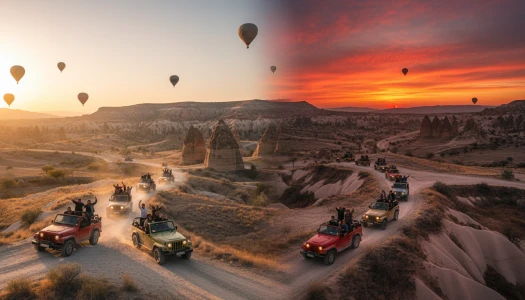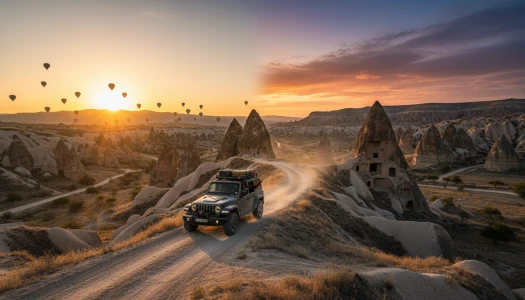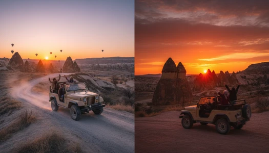 काप्पाडोकिया की जादुई दुनिया का अनुभव करें एक साहसिक जीप सफारी टूर पर, जो इस क्षेत्र के अद्भुत परिदृश्यों को सबसे जादुई समय पर दिखाने के लिए डिज़ाइन किया गया है। सुबह के सूर्योदय या सूर्यास्त के विकल्प में से चुनें और अपनी 4x4 यात्रा को घाटियों, छिपे हुए मार्गों, और उन पैनोरमिक दृष्टिकोणों की ओर ले जाएँ जहां आमतौर पर अन्य टूर नहीं पहुँचते। सूर्योदय पर, आपको तड़के आपके होटल से उठाया जाएगा और एक अद्भुत दृष्टिकोण पर ले जाया जाएगा। जैसे ही आसमान चमकने लगेगा, पहले दिन की रोशनी को देखकर देखिए कि कैसे परियों की चिमनियाँ, चट्टानें, और प्राचीन गुफाएँ क्षितिज पर फैलती हैं। कई सुबहों में, रंग-बिरंगे हॉट एयर बैलून आसमान में तैरते हैं, जो अविस्मरणीय तस्वीरों के लिए एक सपने जैसा दृश्य बनाते हैं। शाम के सूर्यास्त वाले विकल्प में एक बिल्कुल अलग मूड होता है। नरम सुनहरी रोशनी चट्टानों को नारंगी, गुलाबी, और लाल रंग में बदल देती है, जबकि ठंडी हवा और लंबे परछाइयाँ दृश्यों में नाटकीयता जोड़ती हैं। आपके ड्राइवर-गाइड ऑफ-रोड रास्तों और दृश्य धाराओं पर यात्रा करेंगे, प्रसिद्ध दृष्टिकरों और शांत, कम-व्यवस्थित स्थानों पर रुकते हुए जहाँ आप काप्पाडोकिया की खामोशी और सुंदरता में डूब सकते हैं।